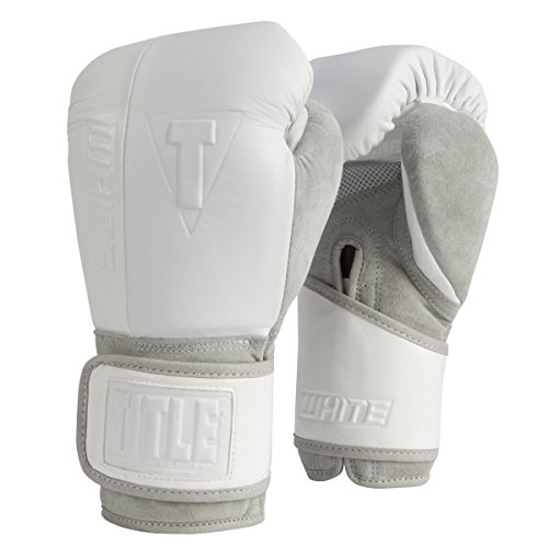 -. Binding : Misc. -. Brand : Title Boxing -. Feature : Precision "king cut" double-ply full grain leathers / Brilliant and luxurious patent leathers and extra deep pile suede leathers / Almost 2" of hi-impact contact foam and lo-impact fist protecting foam sandwiched around a shock absorbing mid-layer / Heavy-duty nylon mesh upper palm inset allows air release / Strategically angled full wraparound wrist strap with hook-and-loop attachment -. Label : TITLE Boxing -. Manufacturer : TITLE Boxing -. ProductGroup : Sports -. ProductTypeName : SPORTING_GOODS -. Publisher : TITLE Boxing -. Studio : TITLE Boxing -. Title : TITLE White Training Gloves