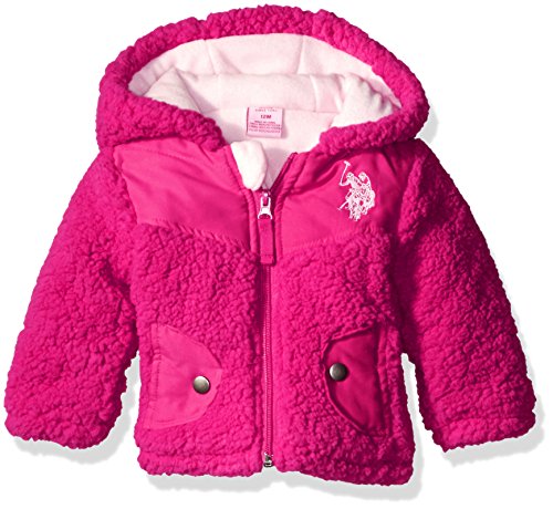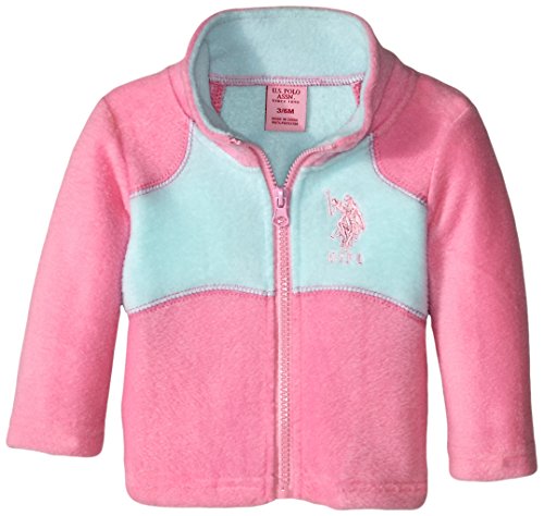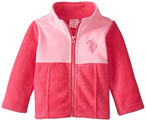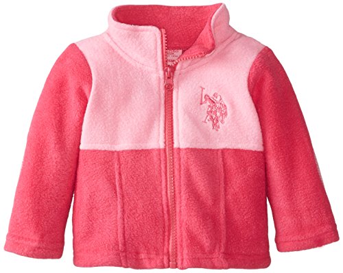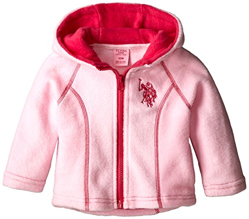 U.S. Polo Assn. Baby-Girls Hi Lo Hem Polar Fleece Jacket, Puff Pink, 18 Months
