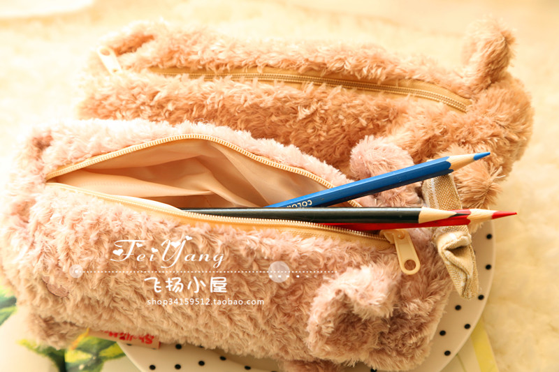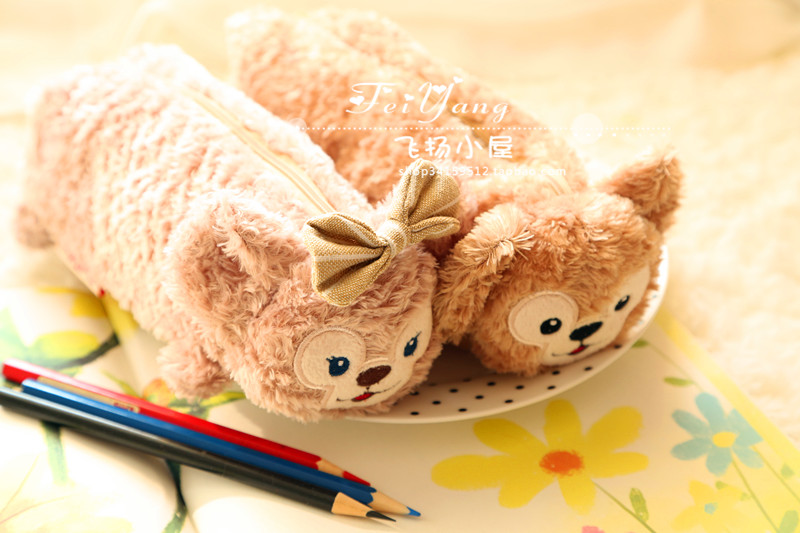 Cartoon creative, cute bear Duffy, student plush pencil case, stationery large capacity bag pouch