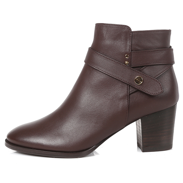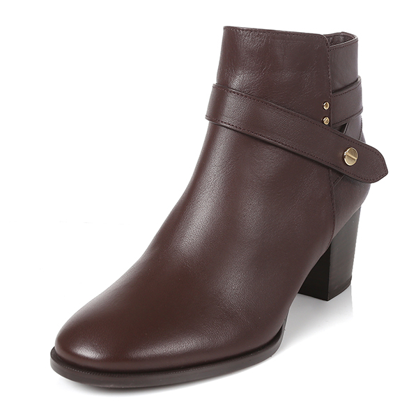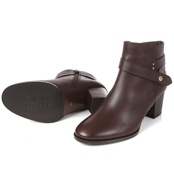 스트랩 디테일과 골드도트 장식이 포인트인 앵클부츠.