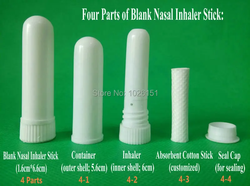 One set of plastic inhaler:four parts (inhaler,container, sealing cap, cotton wick