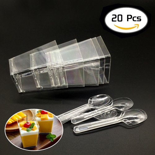 OTRMAX 5oz Clear Plastic Dessert Tumbler Cups with Mini Spoons 20pcs