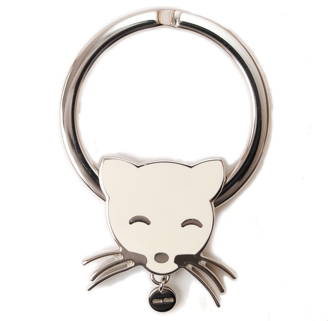 ミュウミュウ キーリング/キーホルダーmiumiu キャットモチーフ 5AP705 ペオニアピンク シルバー金具ミュウミュウより、アニマルモチーフの可愛らしいキーリング。愛らしいネコのスマイルフェイスが印象的です。プラダの姉妹ブランドとして人気の高いミュウミュウ。程よい重厚感があり、ゴージャスな印象に。-商品状態-商品番号 miu-16-127 サイズ リング:約4.3cm 素材 メタルカラー 本体:BIANCO/ホワイト金具:シルバー 参考定価 付属品 純正箱 -商品状態-程度 :ランクN○新品。○新品ではございますが、入荷時より、若干のすれがあります。予めご了承くださいませ。