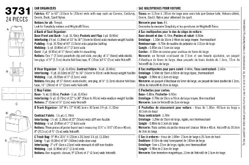 -. Feature : Crafts in size os (one size) simplicity pattern 3731 / Number of looks included:5 / Designed and manufactured in the usa / Sested Fabrics: 45-Inch to 60-Inch (115cm to 150cm) wide with nap such as Canvas, Corduroy, Denim, Duck, Sport Nylon