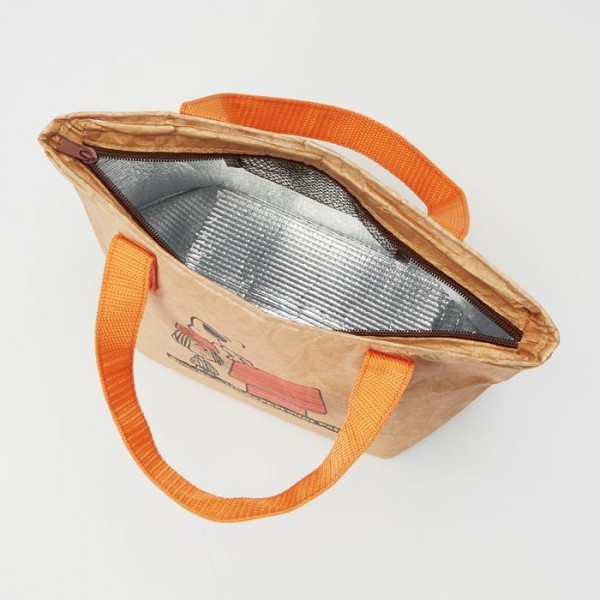 外側はおしゃれなワックスペーパー風、内側は保冷効果のあるアルミ蒸着フィルム。お弁当箱などを入れるのにぴったりなサイズの保冷トートバッグです。 |