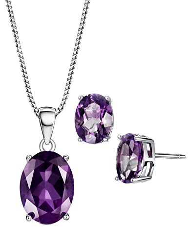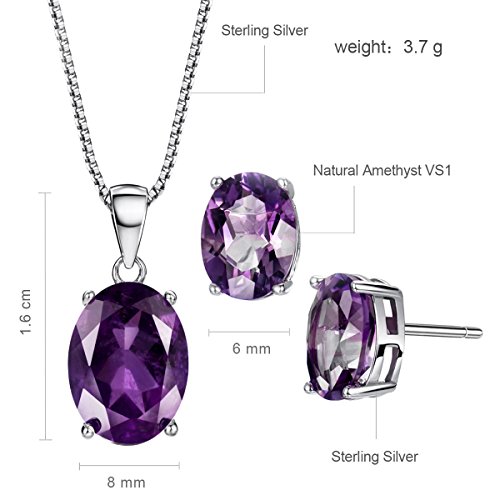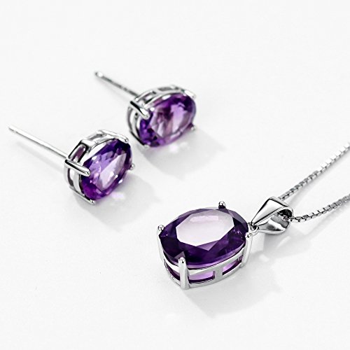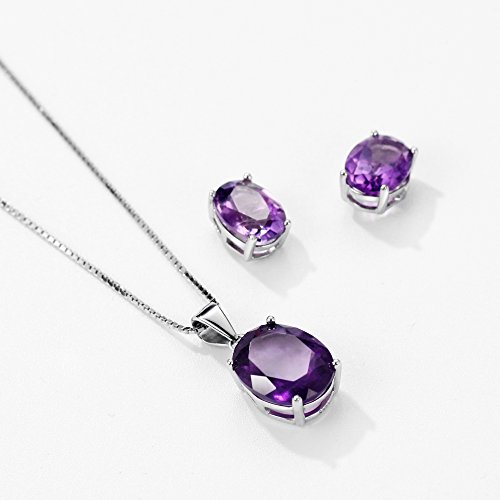 The necklace made of natural amethyst set in sterling silver with S925 stamp, Necklace Stone weight: 3.8 cttw, Earrings Stone Weight: 3.2 cttw, Chain Length: 18 inch