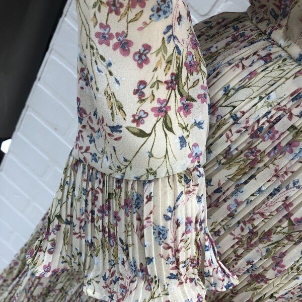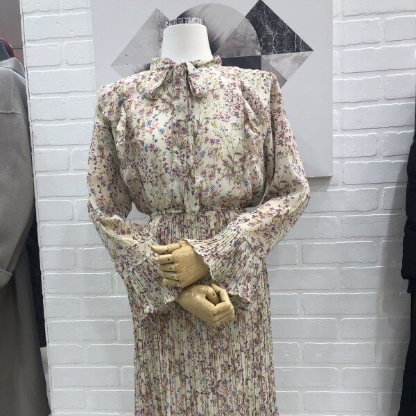 소매라인이 예쁜 플라워 패턴의 원피스입니다