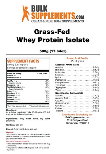Studio : Bulksupplements Publisher : Bulksupplements Binding : Health and Beauty Product Description Whey is a substance produced during cheese production. It is the liquid content that remains after the milk has curdled and coagulated. Whey can be processed and isolated into three different types of protein: Whey Protein Isolate, Whey Protein Concentrate and Whey Protein Hydrolysate. This particular form of organic Whey Isolate is antibiotic-free, comes from grass-fed dairy sources, and contains both milk and soy ingredients. Whey is a very rich source of protein, which accounts for 80% of its total weight. It builds and repairs muscle tissue and aids in the recovery of exhausted muscles after high intensity physical exercise. 0
