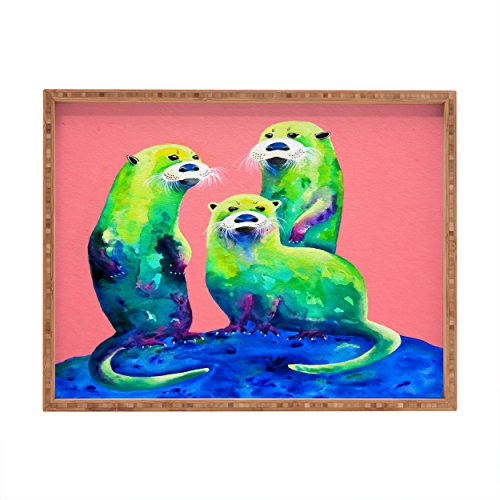 Deny Designs Clara Nilles Margarita Otters On Fresh Melon Indoor/Outdoor Rectangular Tray, Large/14 x 18
