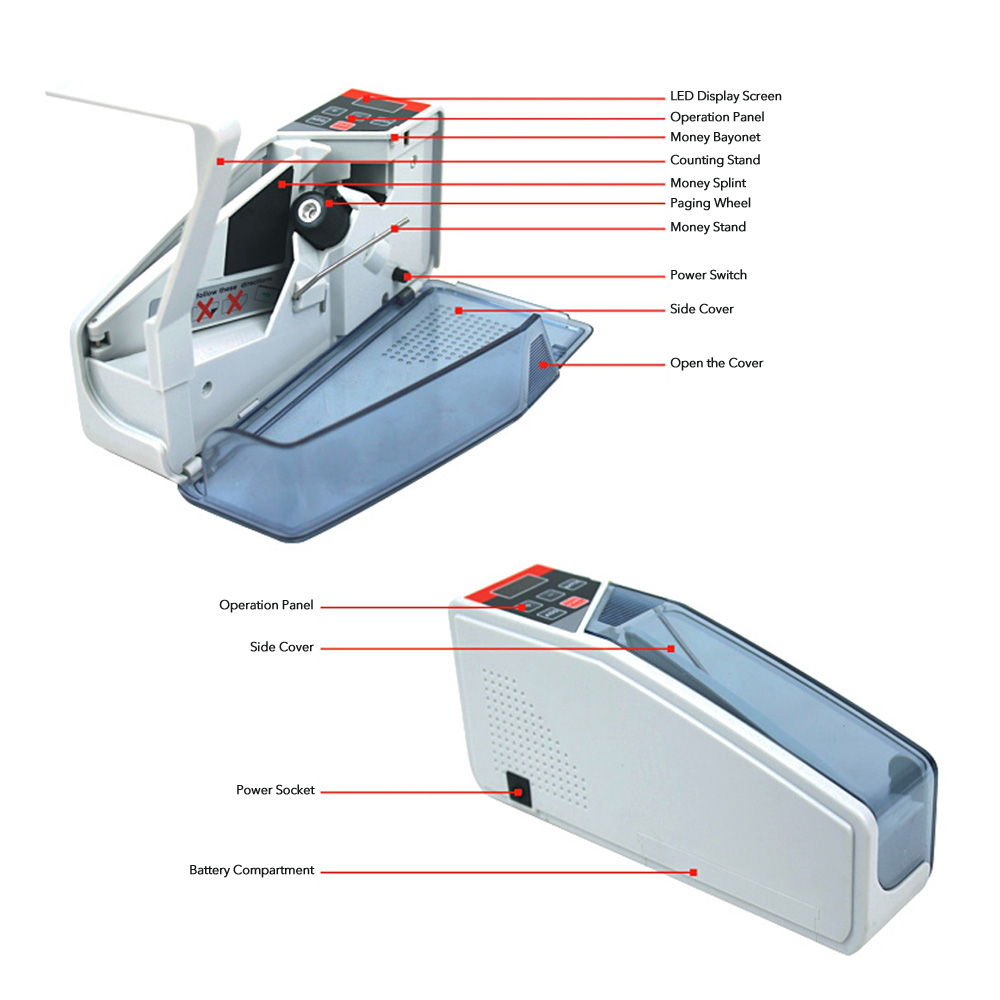This currency counter is capable of counting most paper currencies in the world. Its small size and design meet poeple\'s need for counting cash conveniently.