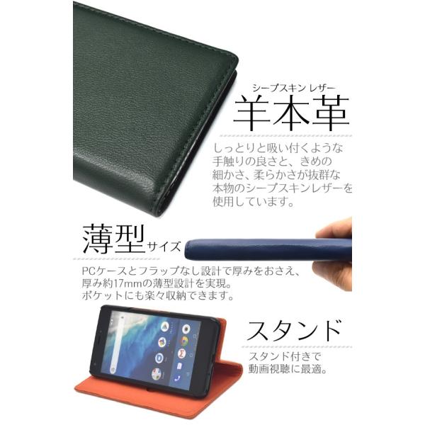| 商品の説明 | 高級感あふれるシープスキンレザーを使用した、シープスキンレザー手帳型ケース。 しっとりと吸い付くような手触りの良さと、きめの細かさ、柔らかさが抜群な 本物のシープスキンレザーを使用しています。 背面を折り返すとスタンドとして使用できるので、動画視聴に便利です。 横開きタイプなので、手帳のように使うことができます。 また、内側には収納しやすい縦型のカードポケットが付いています。 フラップがない、マグネット内蔵タイプなので開閉が簡単です。 内部ケースはハードケースなのでしっかりとスマートフォンを固定できます。 PCケース採用とフラップなし設計で厚みをおさえ、 厚み約17mmの薄型サイズを実現。 ポケットにも楽々収納できます。 |