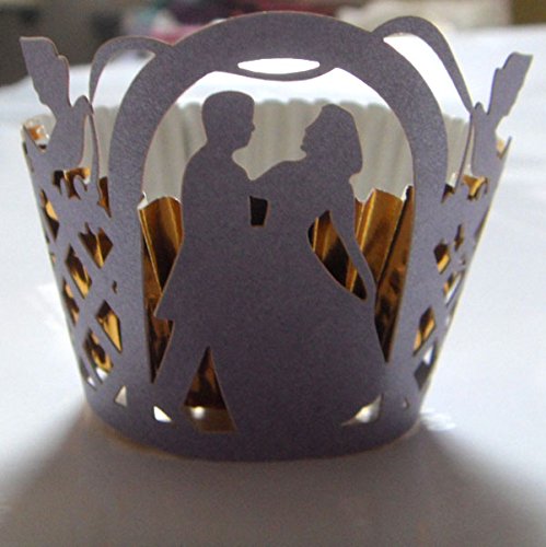 - Light Purple Bride Groom Laser cut Cupcake Wrapper Cup Cake Baking Muffin 60pcs,Standard Size