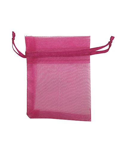SUNGULF 100Pcs Sheer Organza Drawstring Pouches Wedding Gift Bags 3x4 Inches (Hot Pink)