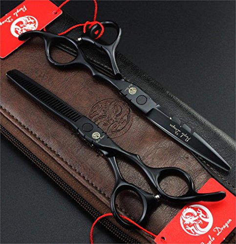 Purple Dragon Professional Japan Hair Salon Cutting Thinning Scissors Red Color Hairdressing Shears Set with Bag (6.0 inch)