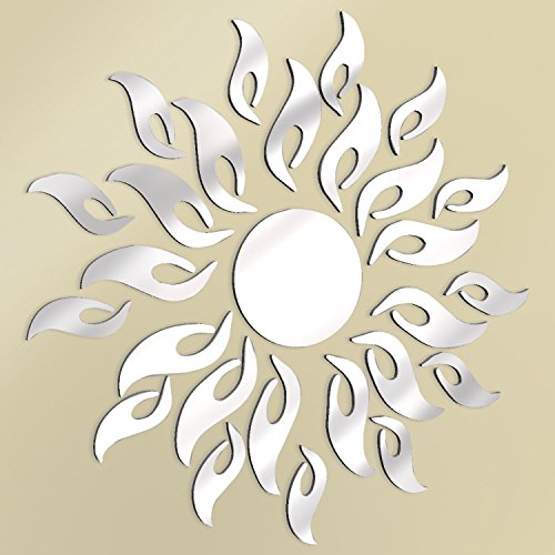 -. Binding : Kitchen -. Brand : Blue Oak EnterP.R.Ises -. Feature : Mirrors for Wall Decor are the perfect DIY project for the afternoon. Beautiful touch of pizzaz whether over the couch, in dining room or on your bedroom wall. / Acrylic, 3D sunburst is silver and comes with protective film so your reflective surface doesn't get scratched. / Simple application instructions included along with a visual design for easy completion. Design and dimensions of this sunburst depends on your preference and wall size. / Your new wall decor is movable, but will require additional adhesive the second time installed. / To guarantee you're receiving genuine Mirrors for Wall Decor make sure you're buying from Blue Oak EnterP.R.Ises. Other sellers are not authorized. -. IsAutographed : 0 -. PackageQuantity : 1 -. ProductGroup : Home -. ProductTypeName : HOME -. Title : Mirrors For Wall Decor Decorative Wall Decals Home Decorations Removable Art Sunburst Flower Accent