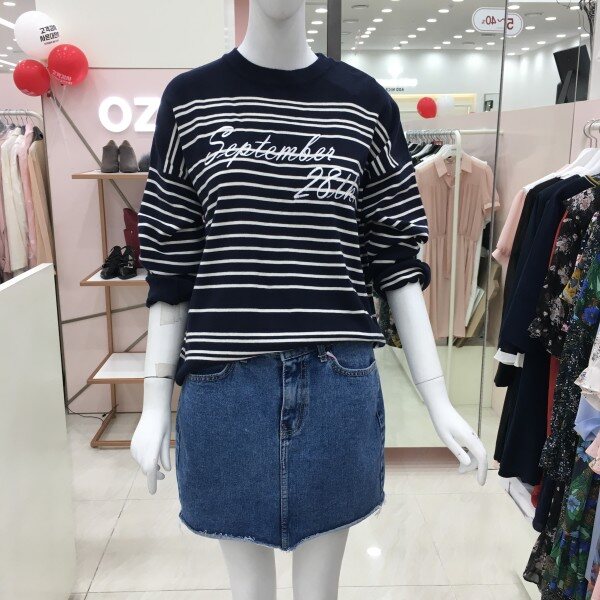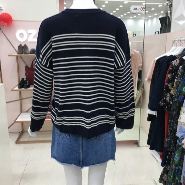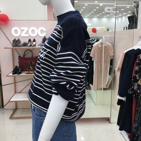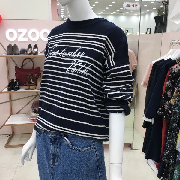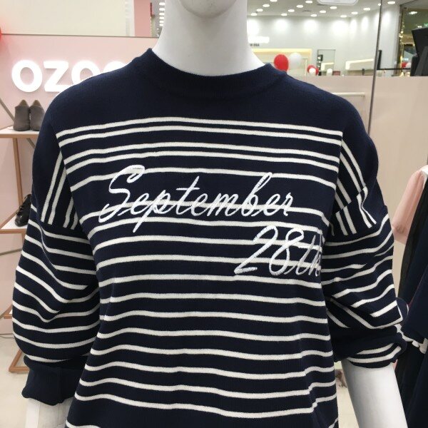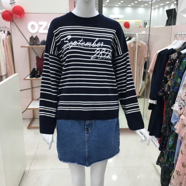 심플한 스트라이프 디자인이 프론트에 레터링 자수가 있는 니트 소개해드려요.간절기에 단품으로 활용하기 좋은 톡톡한 두께감입니다.