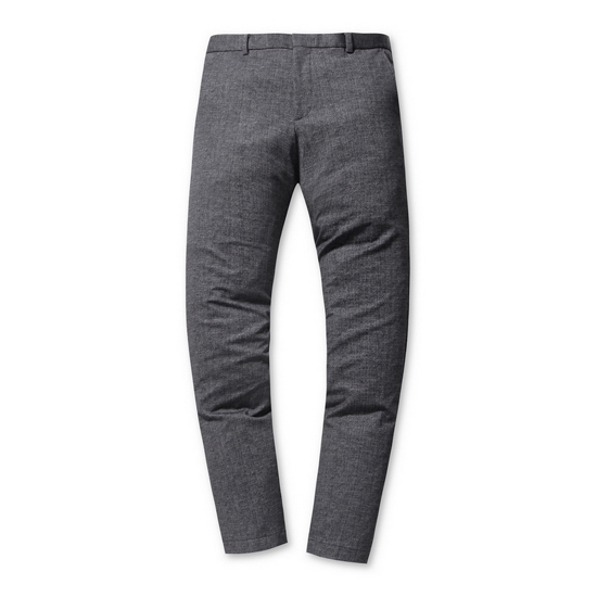 - 톤온톤 컬러의 잔조직 텍스쳐의 남성 팬츠.
