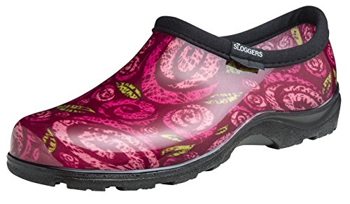 Studio : Sloggers Publisher : Sloggers Binding : Lawn Patio Product Description Step into the spring with our Sloggers - made in the USA - rain garden shoes in new floral Prints. Whether you're working in the garden, running errands around town on a rainy day, or just out walking the dog in the morning dew, you'll feel comfortable secure in these fun, waterproof shoes. They included our exclusive "All-Day-Comfort-Insoles", the main reason why Sloggers boots shoes receive such high comfort praise, our signature "Deep-Lug-Tread" for excellent traction in water mud. We use a Soft, flexible upper material made from odorless, medical grade, 100% recyclable plastic, our soles contain up to 50% recycled material Sizing info: half sizes order up, for a "perfect fit", order our Half-Size Cut-To-Fit Insole (style 330BK) to make any Sloggers boot or shoe 1/2 size smaller. Proudly made in the USA from 100% recyclable material, when they are all worn out, return them to us we'll make them into another shoe! how is that for "reuse recycle". for more information on our recycling program, please visit our website. 0