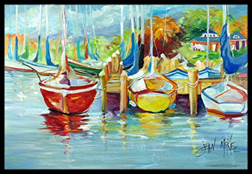 Caroline's Treasures On the Dock Sailboats Indoor or Outdoor Mat, 18" x 27", Multicolor