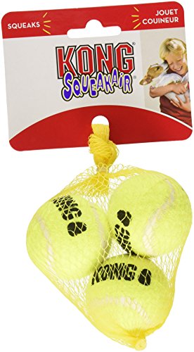 KONG combined two classic dog toys, the common tennis ball and the squeaker toy, to create the exceptional Squeak air Tennis Balls. Our durable, high quality Squeak air tennis ball will not wear down a dog's teeth. All squeaker units are recessed in rubber and covered with tennis ball fabric for safety. This high floating toy is perfect for all dogs that love to fetch.Feature
