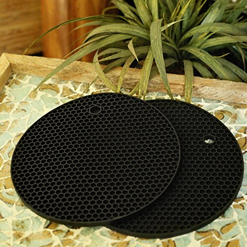 Silicone Pot Holders Set of 2 Premium Heavy Duty Multipurpose Jar Opener, Trivets, Large Coaster, Spoon Rest, Flexible, Durable, Heat Resistant Mat (Black)