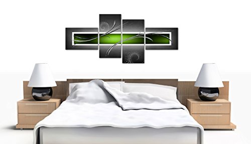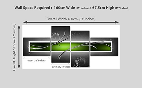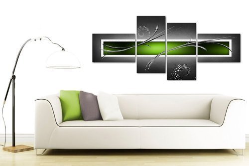 -. Title : Large Lime Green and Grey Abstract Canvas Wall Art Pictures with Black and White - Big Modern Artwork - Set of 4 - Multi Panel P.R.Ints - XL - 160cm Wide