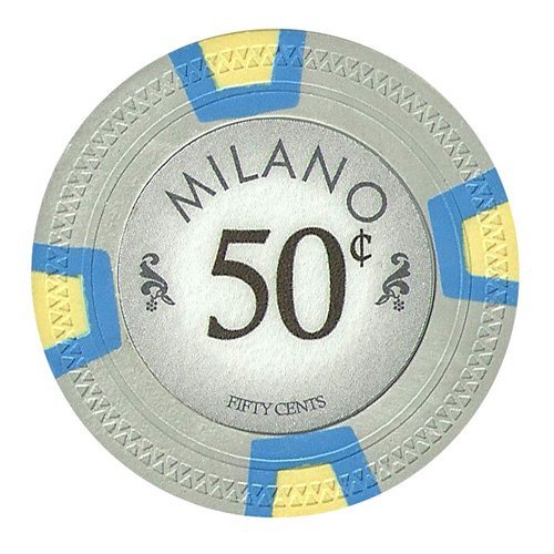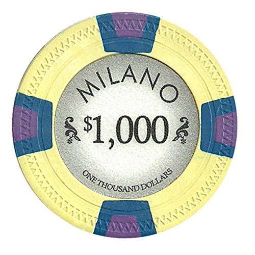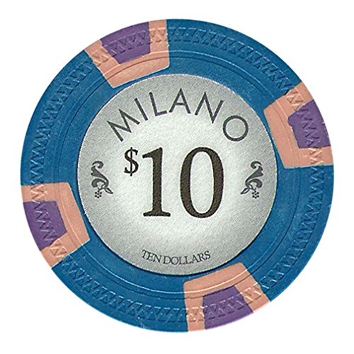 This is a sleeve of 25 Milano clay composite poker chips by Claysmith Gaming. Claysmith offers true casino quality poker chips for the home player. Available denominations include $0.25, $0.50, $1, $5, $10, $25, $50, $100, $500, $1,000, $5,000 and $10,000.Each chip weighs 10 grams.