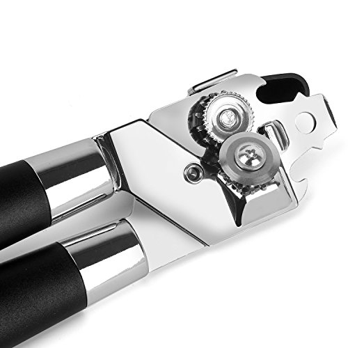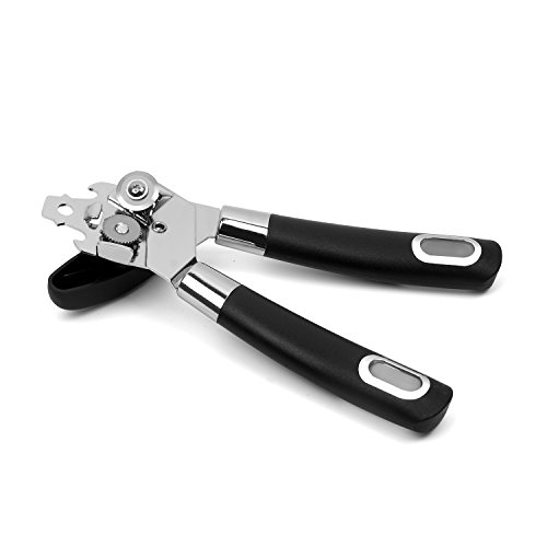 - EASY TO USE: The Alloy gear cutter head, durable and sharp, not easy to wear; the cutting opener edge of the tin is smooth. The combination of the big knob, long ergonomic handles, and sharp cutting wheel makes opening cans an effortless task, even for senior citizen with weak hands from arthritis and wrist problems. This manual opener is designed with very strong knife-like tooth on the wheels that grips the can tightly and stays sharp for years to come