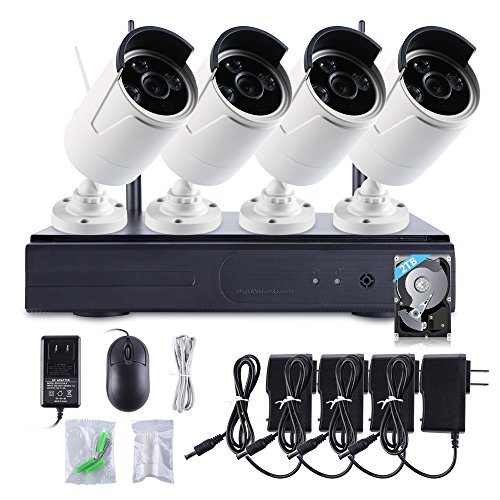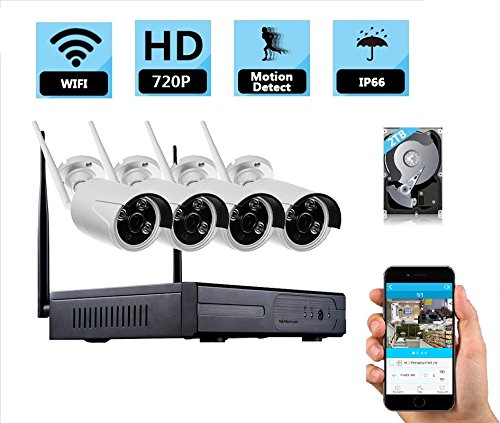 -. Feature : 720p HD Video - Get a sharp and crisp image day or night with the camera's automatic IR-cut filter. Up to 65ft night vision.IP66 Weatherproof Install the cameras outdoors or indoors to keep your home and business safe. / 2.0 Automatic connection with IP, save installation cost , Plug and play, P2P service, remote seconds, smooth picture, support mobile phones, ipad, computer and other platforms / NVR built in two wifi antennas, so the wireless range can cover 1500ft in open area, up to 250ft with obstacles (Between one wall and three walls) and sometimes wifi signal might be affected because of the obstacle and you can move the camera antenna to adjust it into right spot. / Easy Set-up: Simply install the cameras where you desire, plug-in the power supplies, connect to your local WIFI network and go! The cameras will sync themselves. / Applications Wireless suite system can be used in villas, homes, shops, offices, factories, farms and other areas that need good security assurance. it is easy to install, and without wiring.