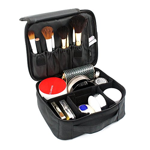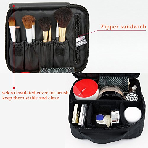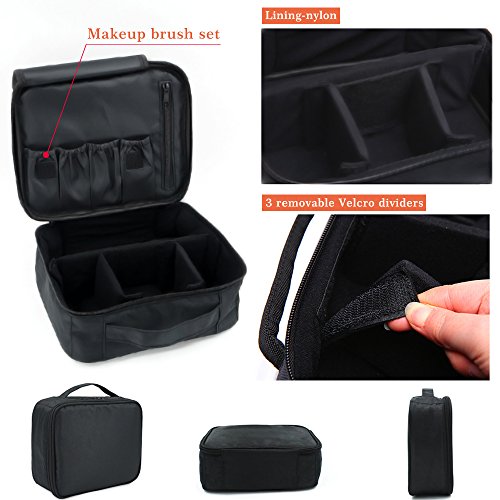 - Perfect Size & Ample Space: 9.8 X7.8X3.5 Inch, provide ample space and brush pockets for women cosmetics makeup tools like eye shadow, lipstick, cream, toner, nail art products, makeup brush set, travel accessories or men's shaving kit. Also with 3 removable Velcro dividers you can adjust to suit your need.