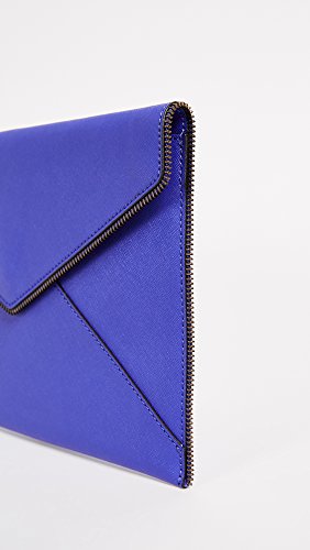 Product Description Exposed zipper trim brings industrial edge to this saffiano leather Rebecca Minkoff clutch. The magnetic front flap lifts to reveal a lined interior with 6 card slots. 0