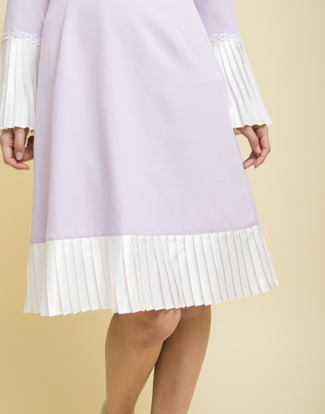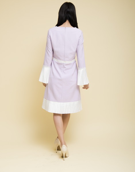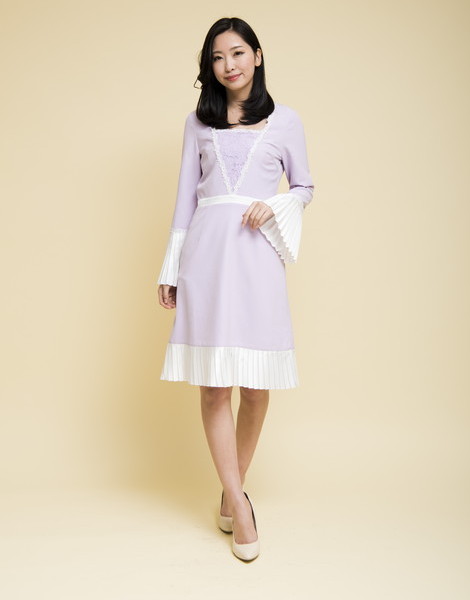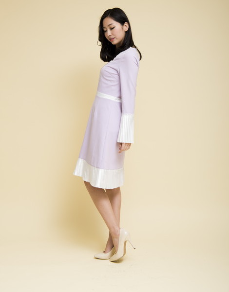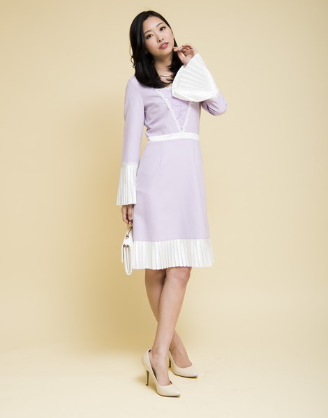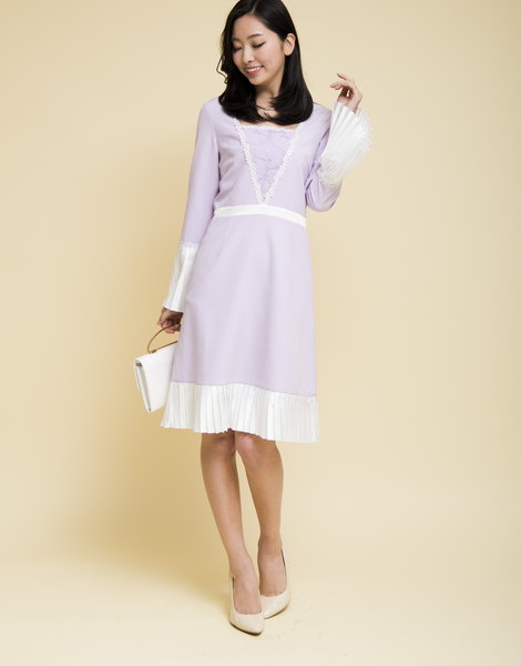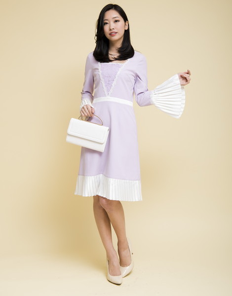 袖口と裾が配色プリーツで切り替えた大人ワンピ。普通のフォーマルワンピにはないきっちりしてるけどデザイン性があるオシャレ度満載な1枚です♪