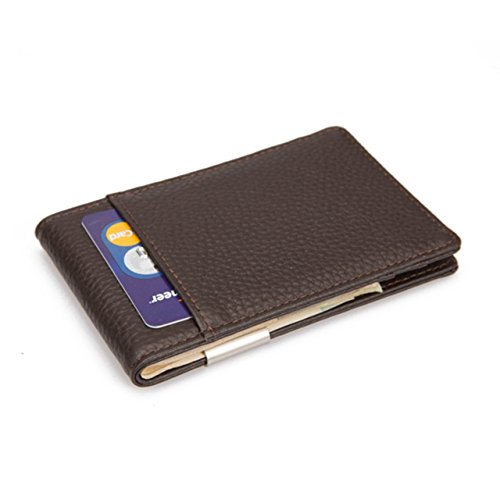 -. Feature : Material: Genuine Layer Cow Leather / Size:4.13"x2.95"x0.39" / Structure:2 inner & 1 outer Card Slots,0 Money Clip Spring Clip(No Magnet) / SECURE Inerior Money Clip; Slim & Thin, Carry comfortably in your front pocket
