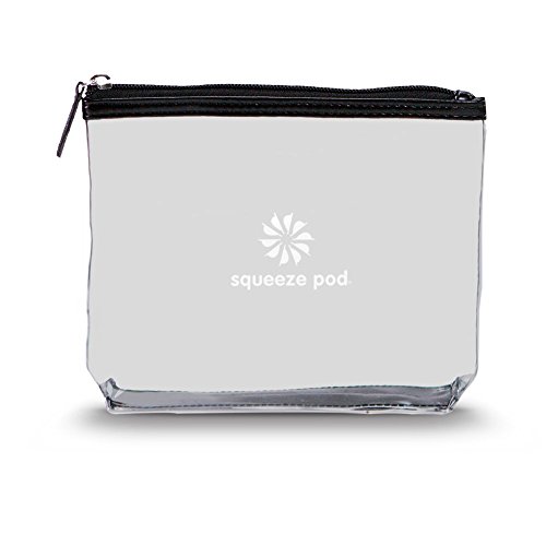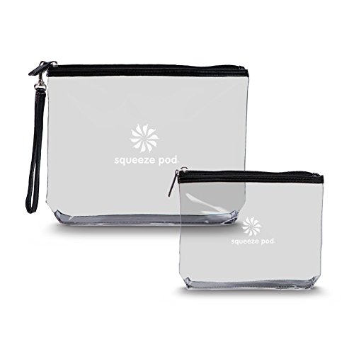 Squeeze Pod Clear Travel Toiletry 2 Bag Bundle - 1 TSA Approved Clear Quart Size Bag w/ Black Trim + 1 Clear Hanging Bag w/ Black Trim. Built to Survive...
