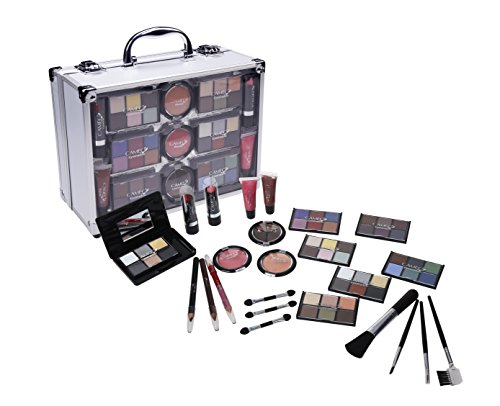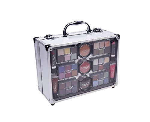 Cameo Carry All Trunk Makeup Kit with Reusable Aluminum Case Exclusive Holiday Gift Set, Black/White