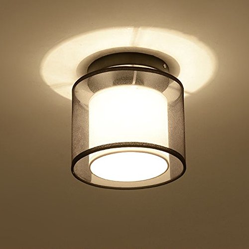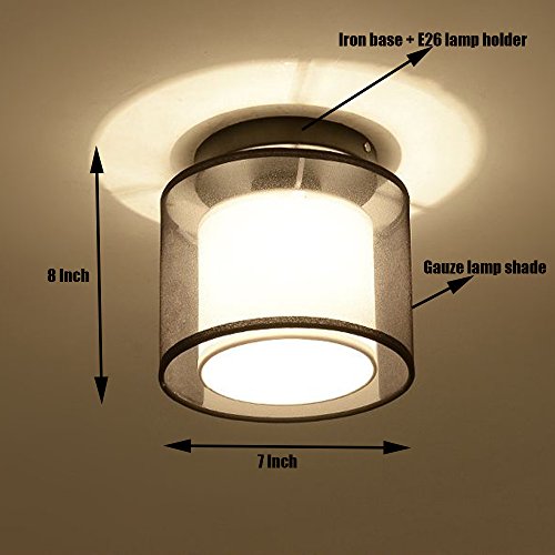 WOERFU Semi-Flush Mount Ceiling Lights, Black Finish, Fabric Shade Pendant Light Fixture (Round Shade)