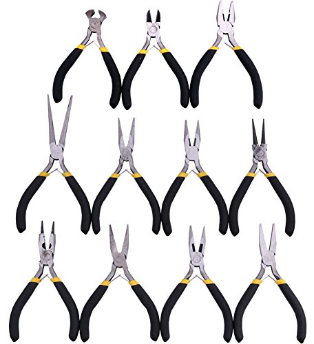 Yeeco 11-Piece Mini Pliers Set, Linesman Pliers, Long Nose with Blade/ Diagonal/ Curved Bend/ Needle Nose/ Flat/ Round Nose Jewelry Pliers, Solid Joint End Cutting Cushion Grip Wire Nipper Repair Tool