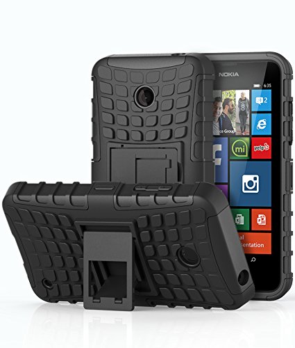 Fosmon [RUGGED] Nokia Lumia 630, Nokia Lumia 635 Case - HYBO-RAGGED Heavy Duty Hybrid Protective Cover with Kickstand - Retail Packaging (Black)
