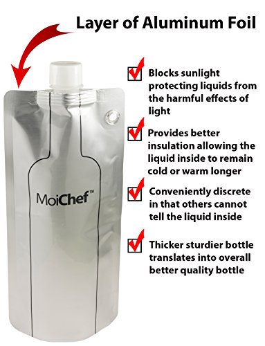 - STRONGER MATERIALS THAN COMPETITORS; manufactured using premium BPA Free plastic along with a layer of aluminum foil. The aluminum foil keeps direct sunlight from penetrating the bottle (not good for wine), better insulation allowing beverages to remain colder or warmer longer, and conveniently discreet in that you can't tell what type of liquid is in the bottle.