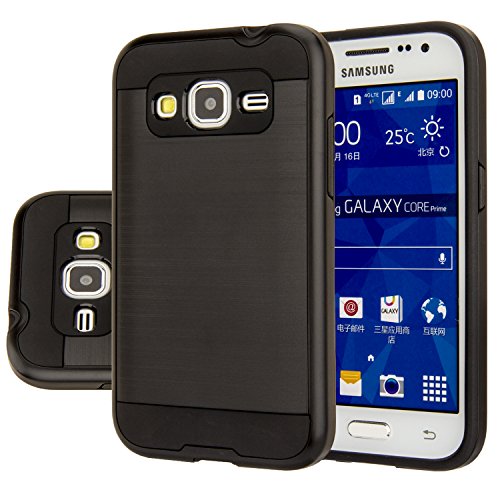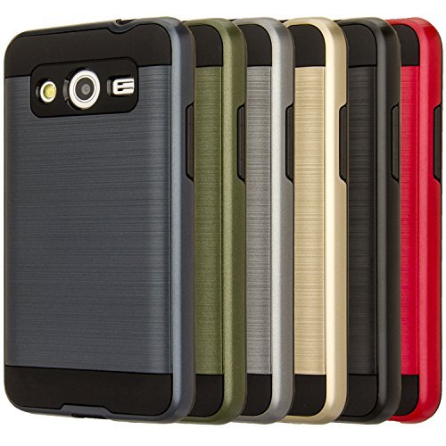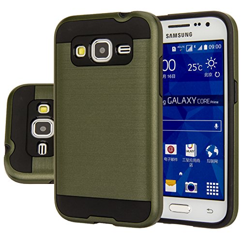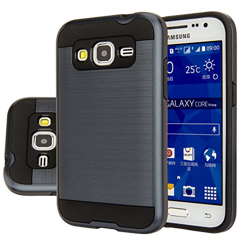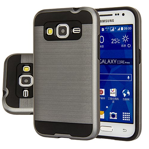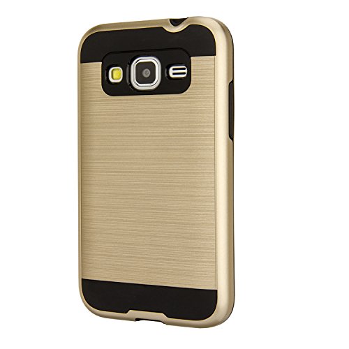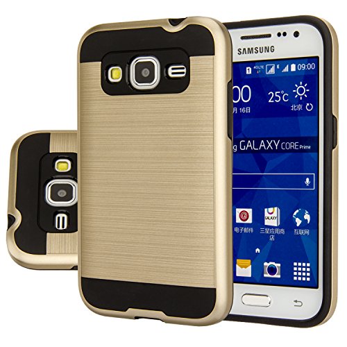 Galaxy Core Prime Case, Galaxy Prevail LTE Case, Aomax Anti-Shock Brushed Metal Texture , TPU & PC Dual Layer Hybrid Non-slip Protective Case For Samsung G3606 G3609 G360 (VLS Gold)