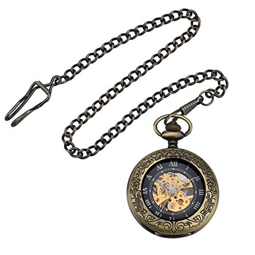 -. Title : Zeiger New Mens Classic Mechanical Steampunk Pocket Watch Stainless Steel Copper Case Skeleton Roman Design Pocket Watch with Chain (Black)