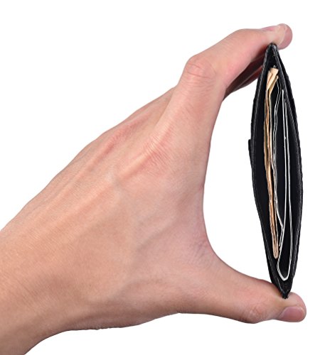 -. Feature : 100% Genuine Leather: High Quality 100% Genuine Full Grain Leather with Skilled Line Finish, Wear-resistant, Soft and Durable. / Ultra Slim/Minimalist: It's Size:11*8*0.5cm, Ultra Slim Design and Easy for Carrying. Perfect Fit in Front Pocket/Back Pocket, Good Choice to Replace Bulky Wallet. / Construction: 6 Card Slots,1 ID Display Window,1 Change Pockets and 1 Strong Magnetic Money Clip. / Powerful Magnetism: One Powerful Magnet is Strong Enough to Hold Plenty of Cash and Cards Tightly. / RFID Blocking Protection: It Keeps Your Personal and Vital Information Secure. Be safe and Protected from Electronic Pick Pocketing. It Can Block 13.56 MHz Frequency (Credit Cards, Debit Cards, Driver License and ID Cards).