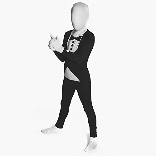 Morphsuits Kids are not 'cut down' adult suits. Rather they have several significant extra design features required for the smaller frame.The fabric on the face has less density so visibility is excellent and rather than having two zips it has 1 zip and a hood with quick release velcro on the back of the head for easy removal. They are fully CE tested - (CE is one of the highest European Toy standards availablke) Morphsuits are the costume phenomenon taking over the world. Morphsuits are all-in-one spandex suits that cover the whole of your body from head to toe. Specially designed so you can breathe through them, drink through them and see through them but no one can see you. Check us out on facebook, 1.5 million people can't be wrong. Three kids sizes are available: Small is 6-8 years, Medium is 8-10 years and Large is 10-12 years, please ensure you purchase the correct size.Feature