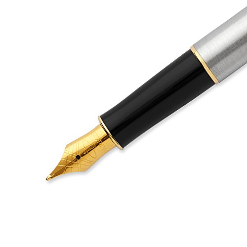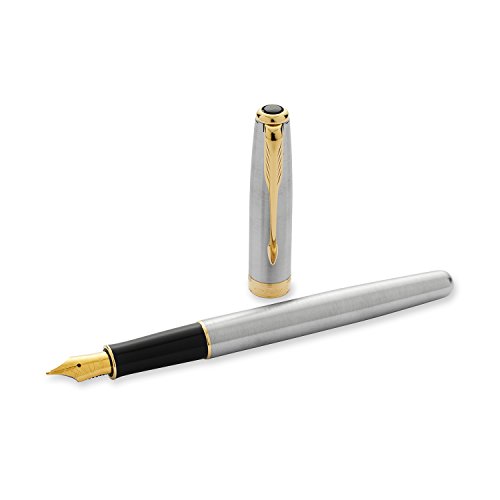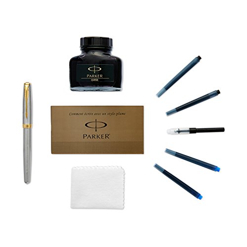 -. Title : Parker Sonnet Fountain Pen, Medium Point, Stainless Steel with Gold Trim Kit and 4 Ink Cartridges (1926996)