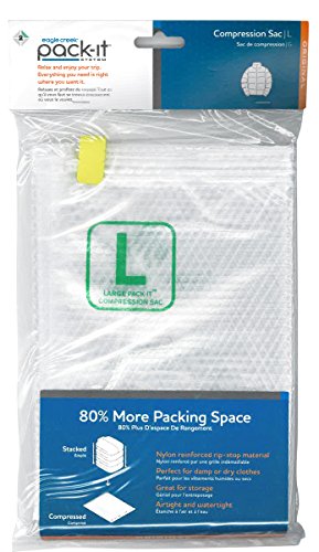 -. Brand : Eagle Creek -. Department : unisex-adult -. Feature : Reduces volume up to 80% / Patented one-way pressure valve / Patented zip closure at top / Great for saving space or bringing home dirty laundry -. ProductGroup : Apparel -. ProductTypeName : LAGE -. Title : Eagle Creek Pack-It Compression Sac - Large