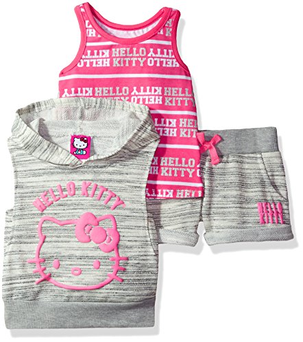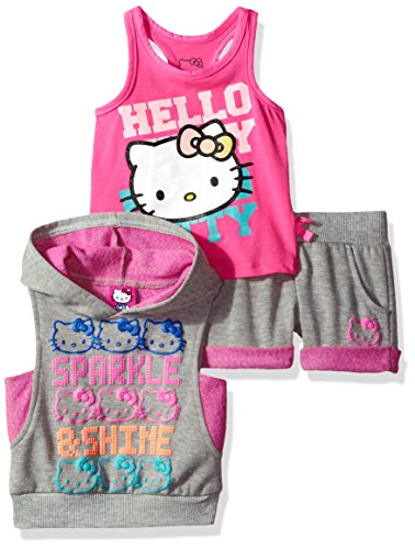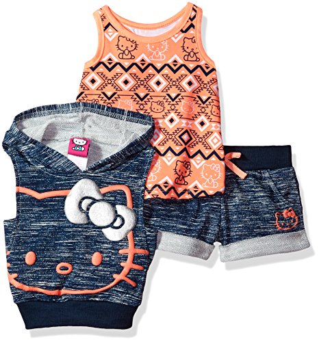 Hello Kitty Big Girls' 3 Piece Sleeveless Hoodie Short Set, Blue, 10