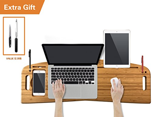 -. Title : Bamboo 13”-15”-17”Laptop Lap Desk of Extra Large Size | Natural Bamboo Lapdesk Surface with Pen Slots and Handle | Mobile Desk, Bed Tray, Ipad Stand, Writing Table| With Extra Gift