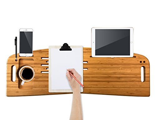 -. Feature : ✔PORTABLE LAP DESK WORKSTATION: A lightweight and multifunctional lap desk that holds a laptop up to 17", tablets, and/or smartphones screen up for a more ergonomic work station on the sofa, in the car, or anywhere you need a comfortable and secure working surface / ✔VENTED LAPTOP COOLING PAD: Unique honeycomb design promotes ventilation and helps keep iPad, Nooks, smart phones and other mobile devices cool for a comfortable work environment / ✔ORGANIZER LAP DESK: Holds up to two tablets or a laptop and tablet and multiple cellphones and includes built-in organizers to store pens, thumb drives and other work supplies / ✔LIGHTWEIGHT AND ERGONOMIC LAP DESK STAND: Beautiful, smooth bamboo finish blends nicely into any décor while lightweight and portable design allows you to position the lap desk comfortably to reduce stress on your neck and back / ✔SOCIALLY AND ENVIRONMENTALLY RESPONSIBLE: Made of easy-to-clean and socially responsible 100% natural bamboo.( DIMENSIONS: 30.7" Length x 10.8" Width x 0.78" Height)SOCIALLY AND ENVIRONMENTALLY RESPONSIBLE: Made of easy-to-clean and socially responsible 100% natural bamboo.( DIMENSIONS: 30.7" Length x 7.8" Width x 0.78" Height)