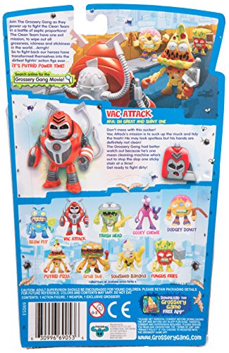 -. Binding : Toy -. Brand : Grossery Gang -. Color : Multi Color -. EAN : 0630996690536 -. Feature : The Grossery Gang have met their match in Vac Attack - the infamous leader of the Clean Team! / Each Action figure comes with its own Exclusive Grossery Gang weapon / All action figures are fully articulated and work with all three playsets! / 9 action figures to collect! -. IsAdultProduct : 0 -. Label : Moose Toys Import -. Manufacturer : Moose Toys Import -. Model : 69053 -. MPN : 69053 -. NumberOfItems : 1 -. PackageQuantity : 1 -. PartNumber : 69053 -. ProductGroup : Toy -. ProductTypeName : TOYS_AND_GAMES -. Publisher : Moose Toys Import -. ReleaseDate : 2017-08-01 -. Size : 1.18'' x 2.76'' x 2.91'' -. Studio : Moose Toys Import -. Title : The Grossery Gang S3 Action Figurine - Vac Attack -. UPC : 630996690536 -. Warranty : No Warranty