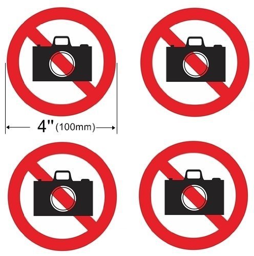 INDOOR (4 Pack) NO PHOTO NO PICTURE 4'' Dia Sign Decal Sticker Window Door Wall stop camera logo